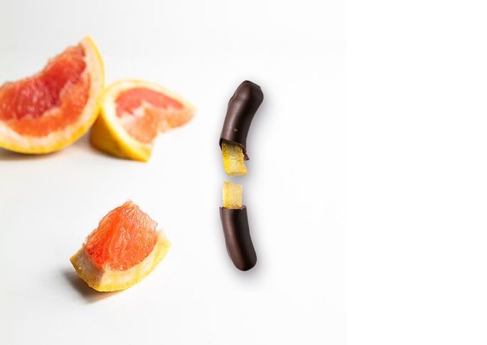 Les Pamplemoussettes : écorce de pamplemousse confite enrobée de chocolat noir
